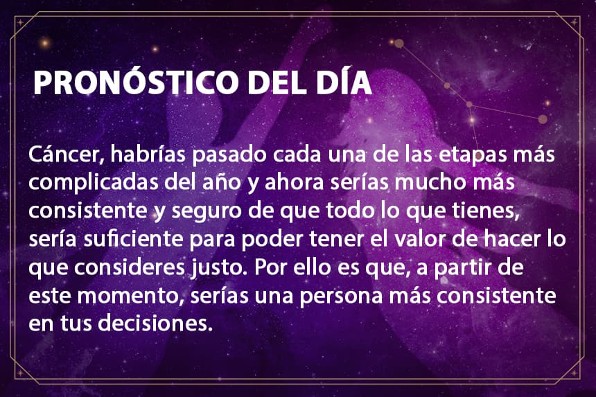 Horóscopo DiarioCáncer, a pesar de tomar una decisión de forma apresurada y conseguir tu objetivo, a partir de ahora serás más consciente de lo que haces.