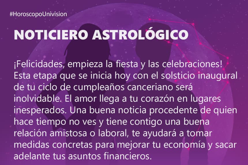 Cáncer – Viernes 21 de junio de 2019: nuevas ilusiones y alegría al comenzar tu nueva vida
