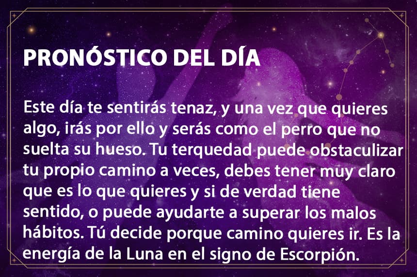 Horóscopo DiarioEscorpión - Martes 25 de mayo de 2021: estarás muy tenaz este día Consulta tu horóscopo de este martes y mira qué predicciones hay en amor, salud y mucho más.Por:Amy PozosPUBLICIDAD1/11escorpiondiario2020UnivisionPUBLICIDAD2/11UnivisionPUBLICIDAD3/11UnivisionPUBLICIDAD4/11UnivisionPUBLICIDAD5/11Estamos en la antesala del eclipse total de Luna con la vibración del 8, todo esto hace que tengamos la atmósfera ideal para la preparación del gran evento.PUBLICIDAD6/11UnivisionPUBLICIDAD7/11UnivisionPUBLICIDAD8/11UnivisionPUBLICIDAD9/11UnivisionPUBLICIDAD10/11UnivisionPUBLICIDAD11/11UnivisionPUBLICIDADRelacionados:Horóscopo DiarioEscorpiónHoróscoposPUBLICIDADNuestro streaming gratis y en español. Entretenimiento sin límites, en vivo y on-demandGratisGratisGratisGratis¿Quieres ver todo el catálogo de contenidos?ir a ViX