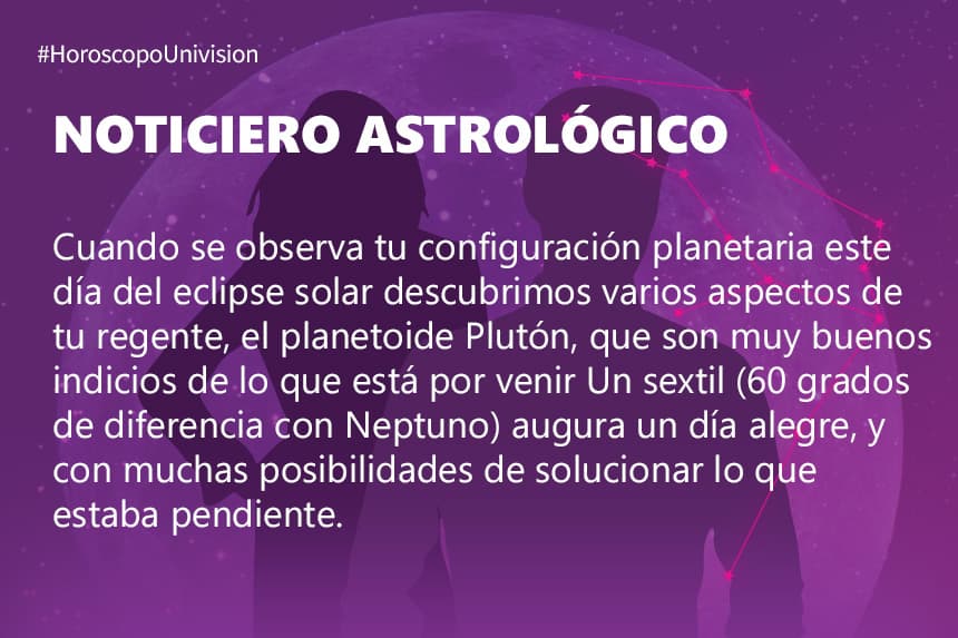 Eclipse de Sol, hay una onda feliz en tu vida amorosa que te inspirará intensamente. Más… Por Profesor Zellagro