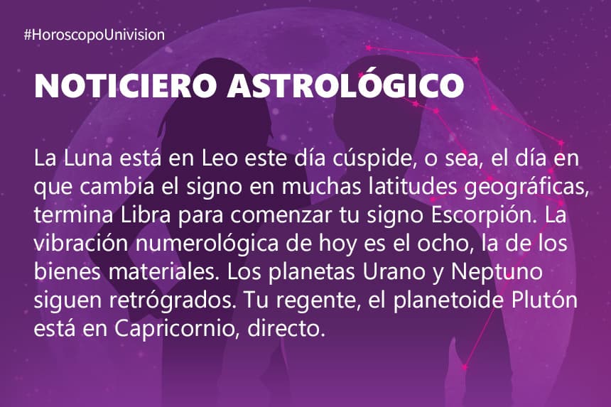Escorpión – Martes 22 de octubre de 2019: Luna en fuego ¡intensidad!