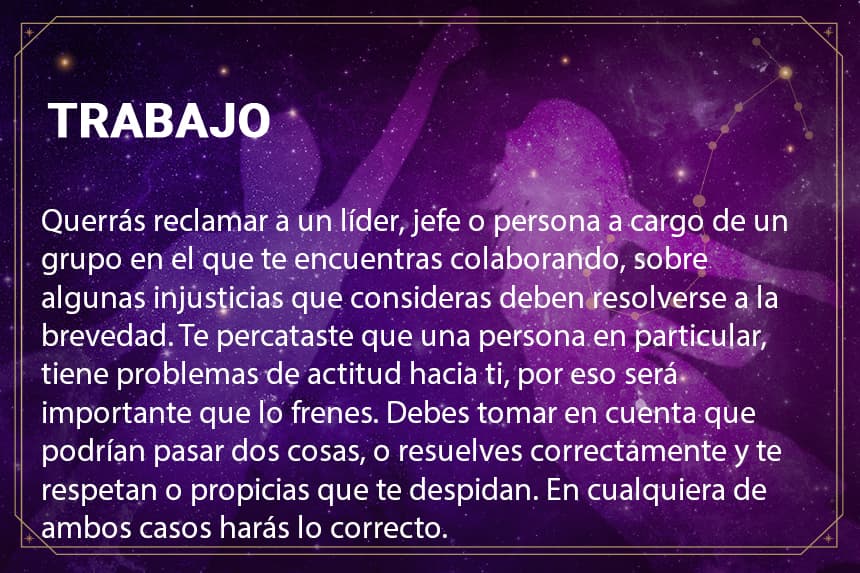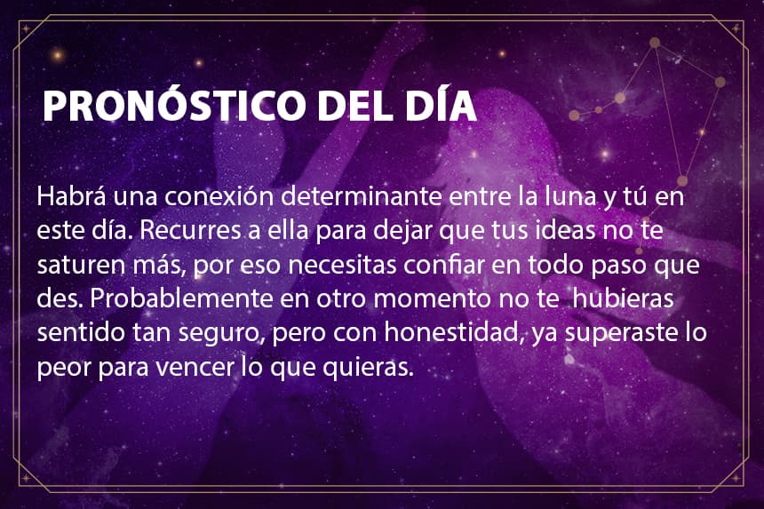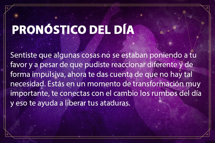 Estás en un momento de transformación muy importante, te conectas con el cambio los rumbos del día y eso te ayuda a liberar tus ataduras.