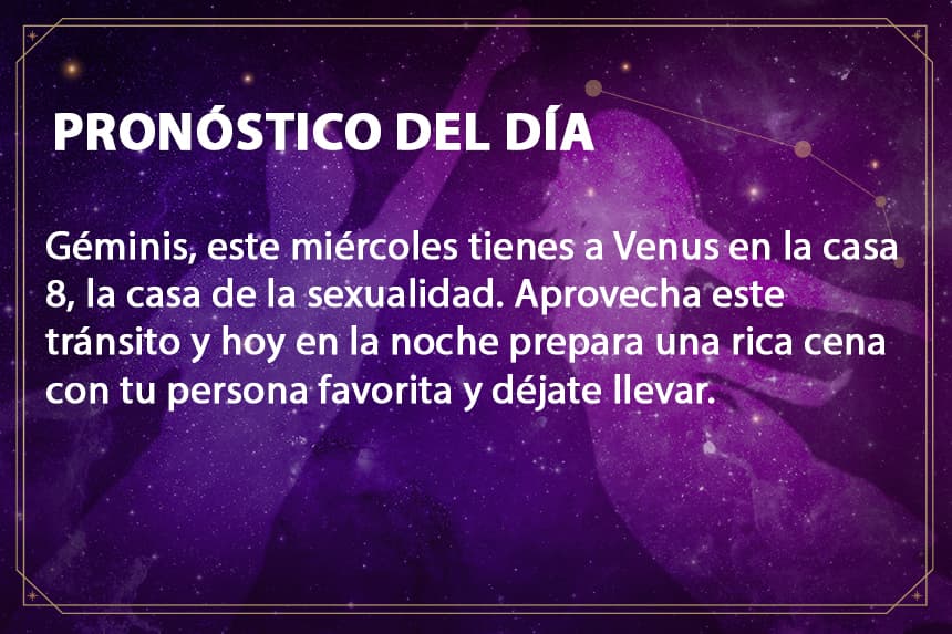 Horóscopo DiarioGéminis, aprovecha este día para el romance ya que tienes la energía de Venus impulsando tu sexualidad.