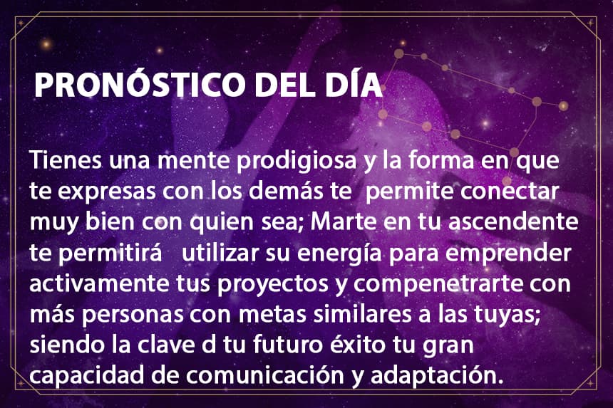Horóscopo DiarioGéminis, tienes la energía de Marte que te ayuda a lanzar exitosamente tus proyectos.