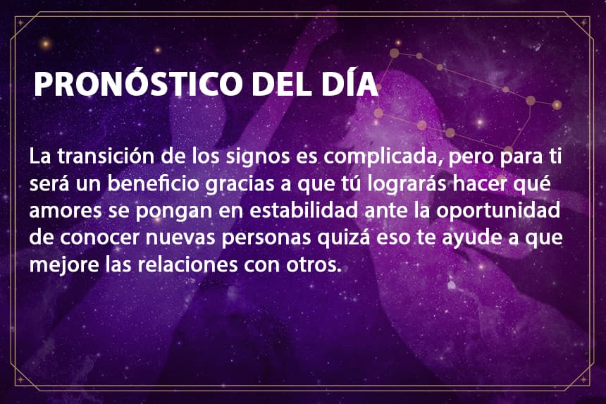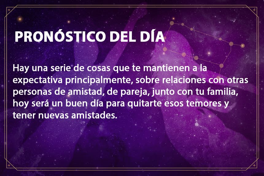 Horóscopo DiarioHoy será un buen día para quitarte esos temores de relaciones pasada y tener nuevas amistades.