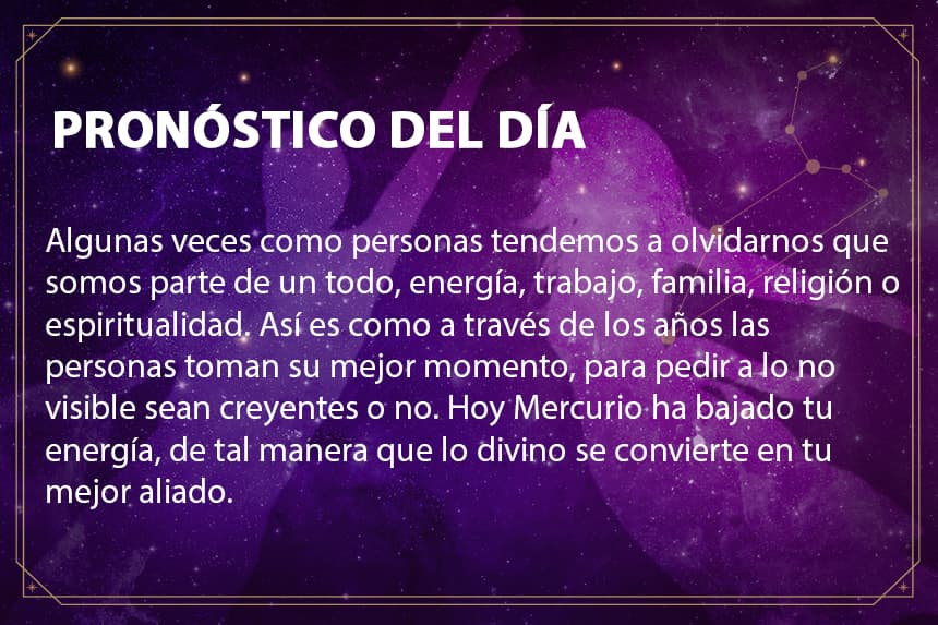 Este jueves Mercurio ha bajado tu energía, de tal manera que lo divino o espiritual se convierte en tu mejor aliado.