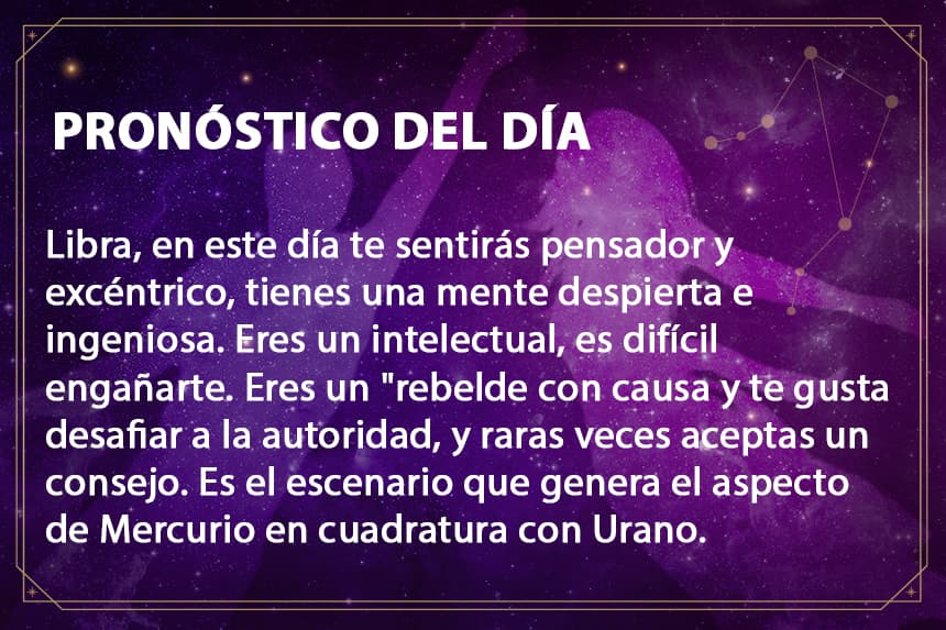 LibraLibra - Martes 23 de febrero de 2021: este día te sentirás pensador y excéntricoLibra, este día estarás muy despierto e ingenioso, aprovéchalo. Por:Amy PozosPUBLICIDAD1/11libradiario2020UnivisionPUBLICIDAD2/11UnivisionPUBLICIDAD3/11UnivisionPUBLICIDAD4/11UnivisionPUBLICIDAD5/11La Luna está transitando por el signo de Cáncer, con una vibración del 3, el número del triángulo místico, que te ayudará a tomar las decisiones pendientes.PUBLICIDAD6/11UnivisionPUBLICIDAD7/11UnivisionPUBLICIDAD8/11UnivisionPUBLICIDAD9/11UnivisionPUBLICIDAD10/11UnivisionPUBLICIDAD11/11UnivisionPUBLICIDADRelacionados:LibraHoróscoposHoróscopo DiarioPremio Lo NuestroPUBLICIDADNuestro streaming gratis y en español. Entretenimiento sin límites, en vivo y on-demandGratisGratisGratisGratis¿Quieres ver todo el catálogo de contenidos?ir a ViX