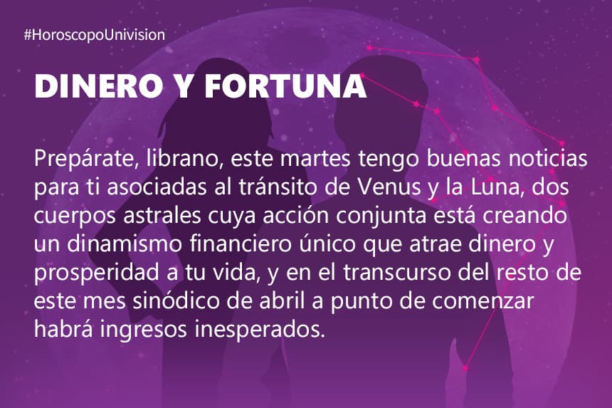 LibraLibra – Martes 21 de abril de 2020: la Luna aumenta tu atracción personalUn día que te inspirará y acentuará tu confianza en ti mismo. Más… Por Profesor ZellagroPor:Univision.PUBLICIDAD1/13libradiarioUnivisionPUBLICIDAD2/13UnivisionPUBLICIDAD3/13UnivisionPUBLICIDAD4/13UnivisionPUBLICIDAD5/13UnivisionPUBLICIDAD6/13UnivisionPUBLICIDAD7/13UnivisionPUBLICIDAD8/13UnivisionPUBLICIDAD9/13UnivisionPUBLICIDAD10/13UnivisionPUBLICIDAD11/13UnivisionPUBLICIDAD12/13UnivisionPUBLICIDAD13/13UnivisionPUBLICIDADRelacionados:LibraHoróscopo DiarioHoróscoposNuestro streaming gratis y en español. Entretenimiento sin límites, en vivo y on-demandGratisGratisGratisGratisGratis¿Quieres ver todo el catálogo de contenidos?ir a ViX