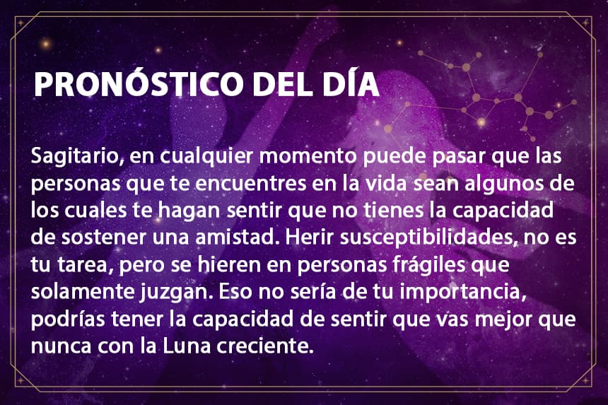 Sagitario, la luna creciente te ayuda a quitar de tu vida a aquellas personas que, en lugar de apoyarte, te hacen sentir menos y frenan tus aspiraciones.