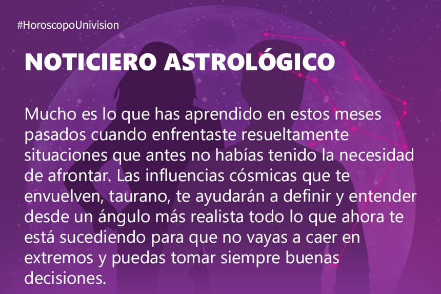 Horóscopo DiarioTauro – Viernes 22 de febrero de 2019: una nueva ilusión atrae a ti la alegríaEntras en un período de total renovación sentimental. Más… Por Profesor ZellagroPor:Univision.PUBLICIDAD1/12ShutterstockPUBLICIDAD2/12ShutterstockPUBLICIDAD3/12ShutterstockPUBLICIDAD4/12ShutterstockPUBLICIDAD5/12ShutterstockPUBLICIDAD6/12ShutterstockPUBLICIDAD7/12ShutterstockPUBLICIDAD8/12ShutterstockPUBLICIDAD9/12ShutterstockPUBLICIDAD10/12ShutterstockPUBLICIDAD11/12ShutterstockPUBLICIDAD12/12ShutterstockPUBLICIDADRelacionados:Horóscopo DiarioHoróscoposNuestro streaming gratis y en español. Entretenimiento sin límites, en vivo y on-demandGratisGratisGratisGratisGratis¿Quieres ver todo el catálogo de contenidos?ir a ViX