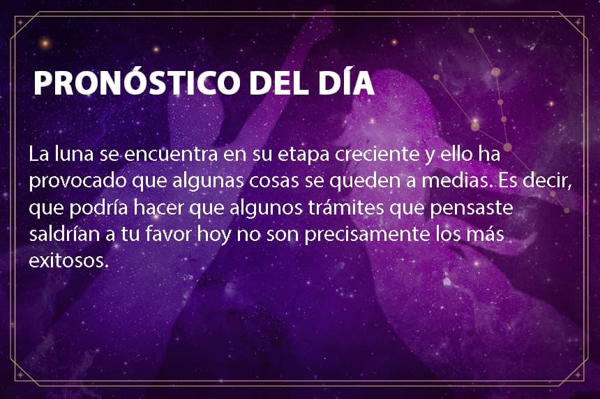 Horóscopo DiarioLa luna se encuentra en su etapa creciente y eso hace quealgunos trámites que pensaste saldrían a tu favor hoy, no sean lo que esperabas.