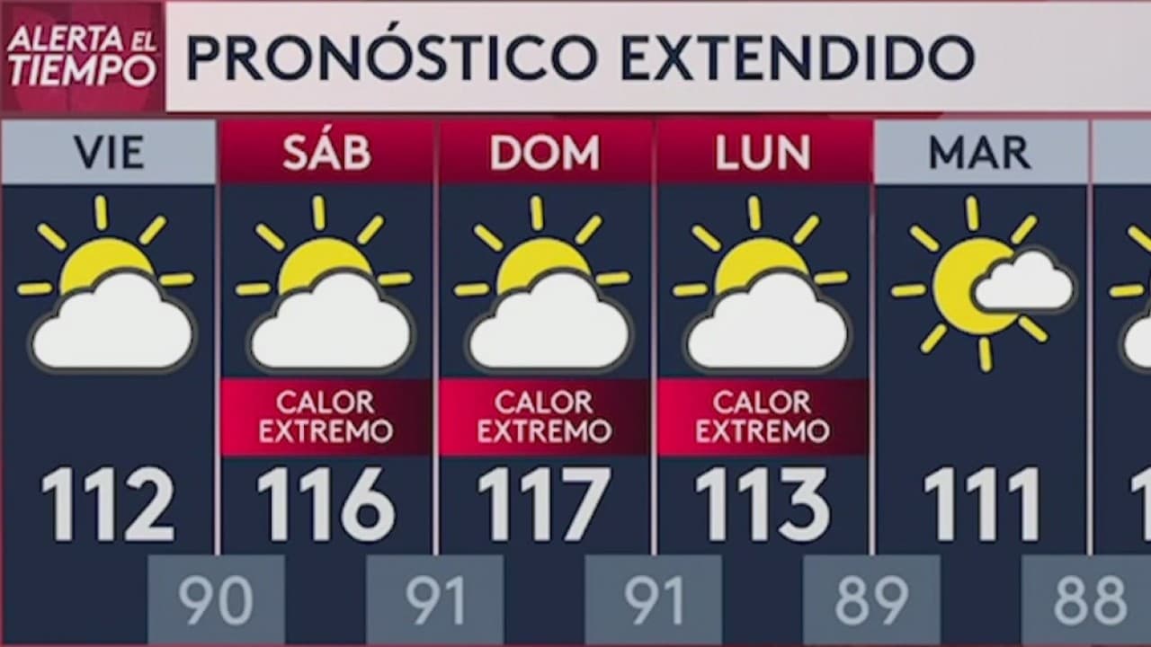 Se esperan que las temperaturas máximas llegarán a los 111 grados Fahrenheit y mínimas de 90 grados. “Pasaremos de muy caluroso a extremadamente caluroso durante el fin de semana. La vigilancia de calor excesivo del viernes al lunes se ha convertido en una advertencia”, reiteró el Servicio Meteorológico Nacional de Phoenix.