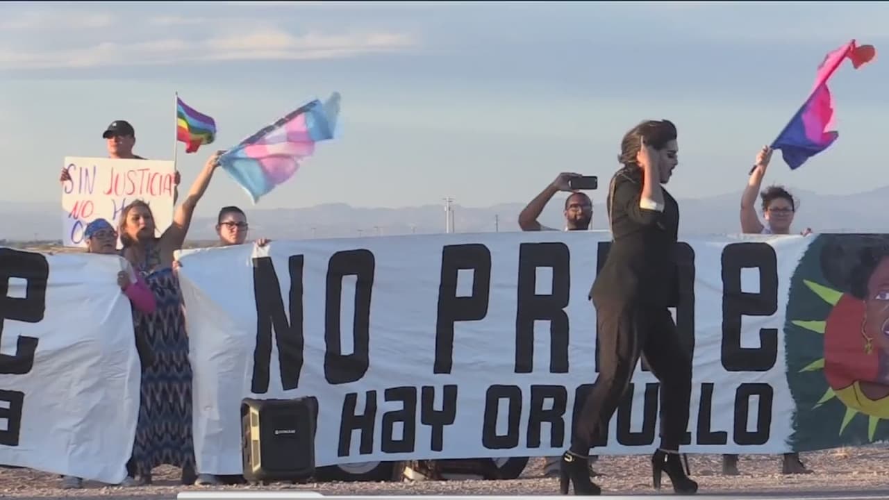 Activistas protestan afuera del centro de detención de Eloy exigiendo que se cumplan los derechos de la comunidad transgénero