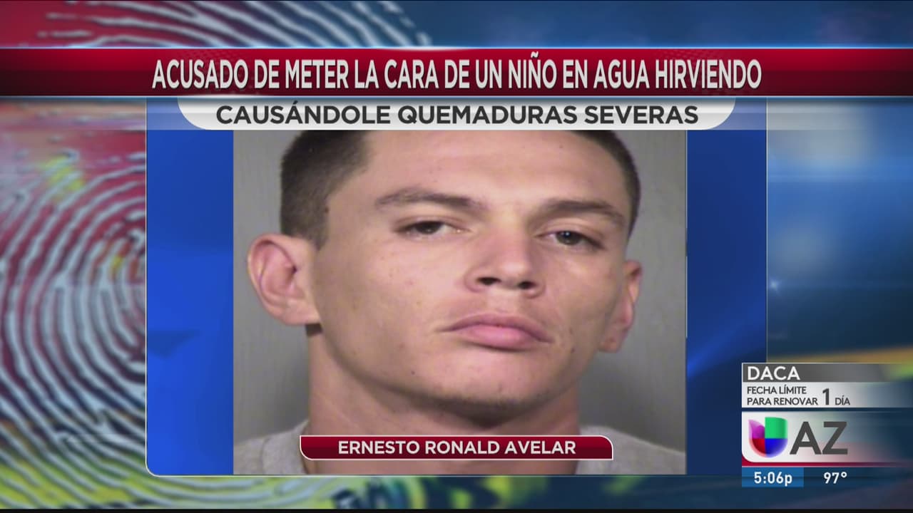 Ernesto Roland Avelar, de 27 años, está bajo arresto por causar heridas a un menor de 4 años al quemarle el rostro en agua hirviendo y luego dejarlo en un cuarto oscuro.