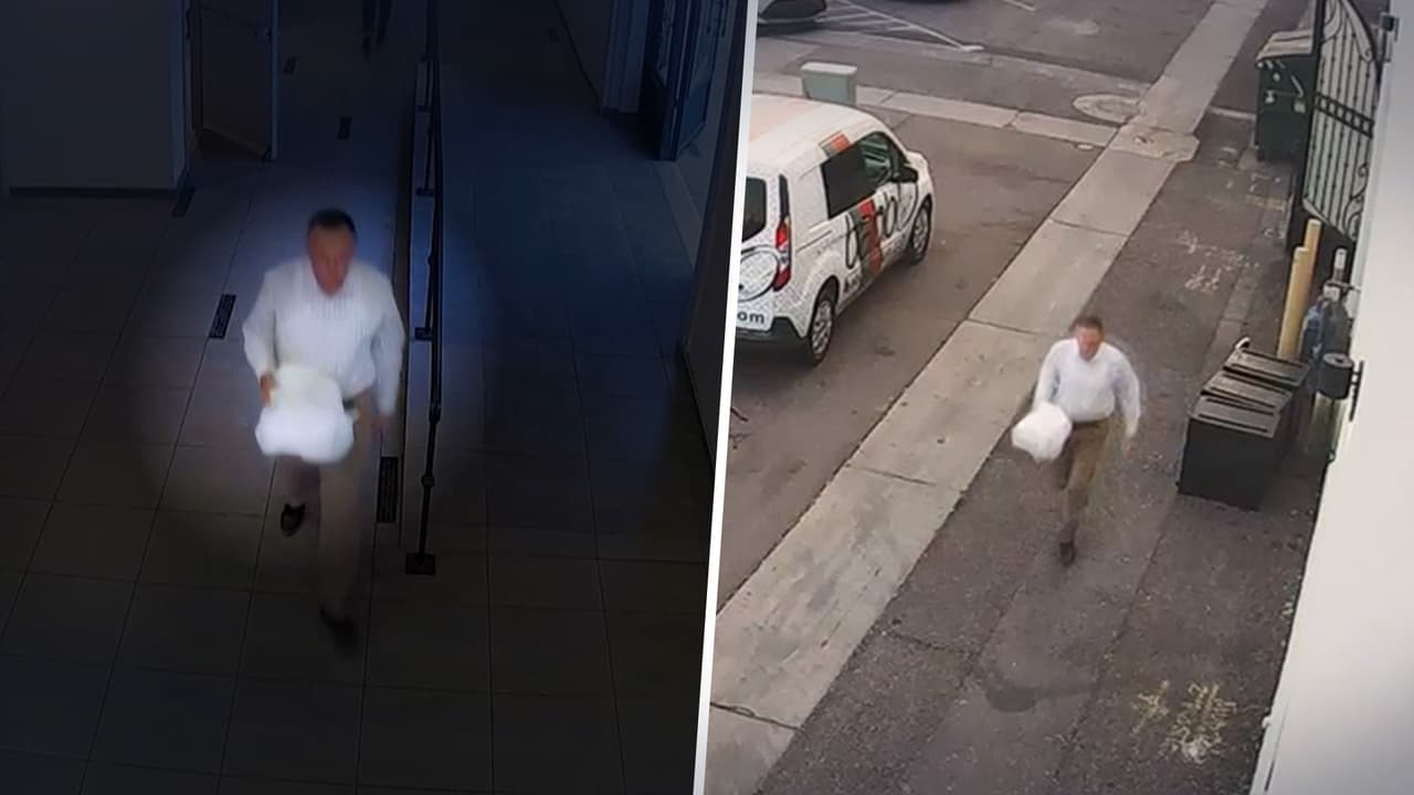 El video de vigilancia publicadas por el departamento de policía de Chandler muestra a Rankin corriendo con lo que supuestamente son las cajas de tarjeta de boda envueltas en una bolsa de plástico.