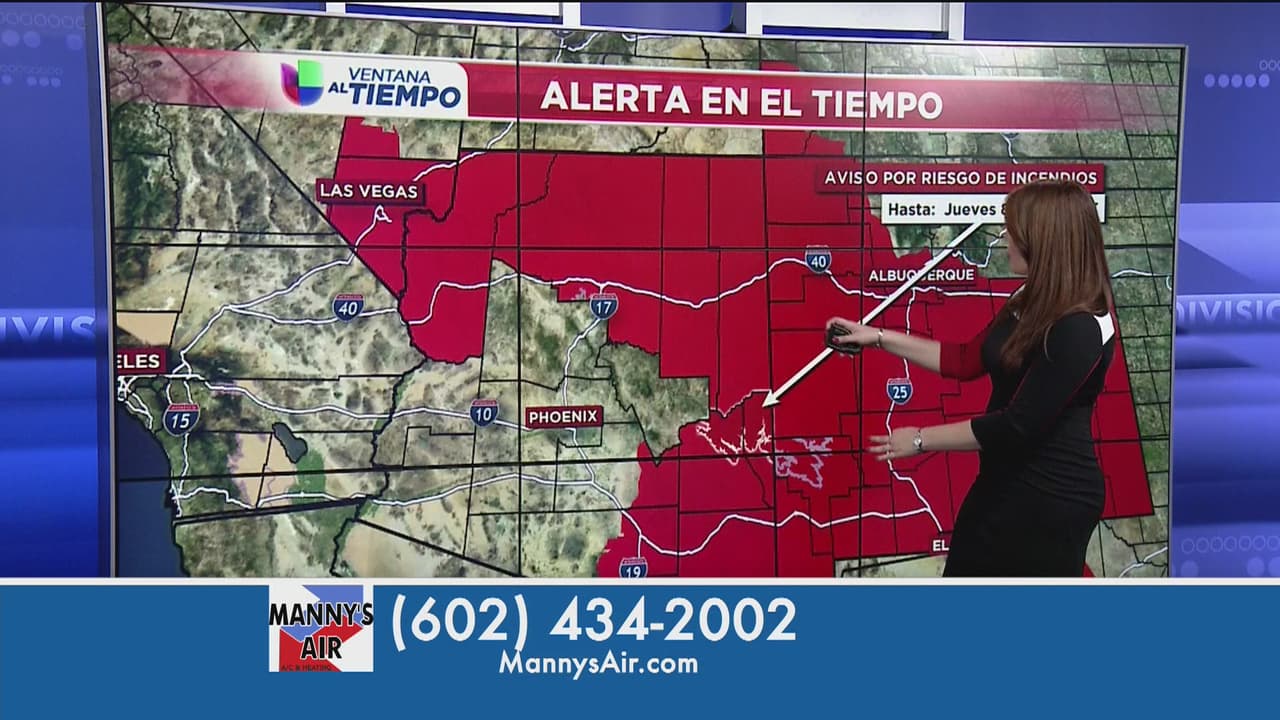 Advertencia de riesgo elevado de incendio y vientos fuertes