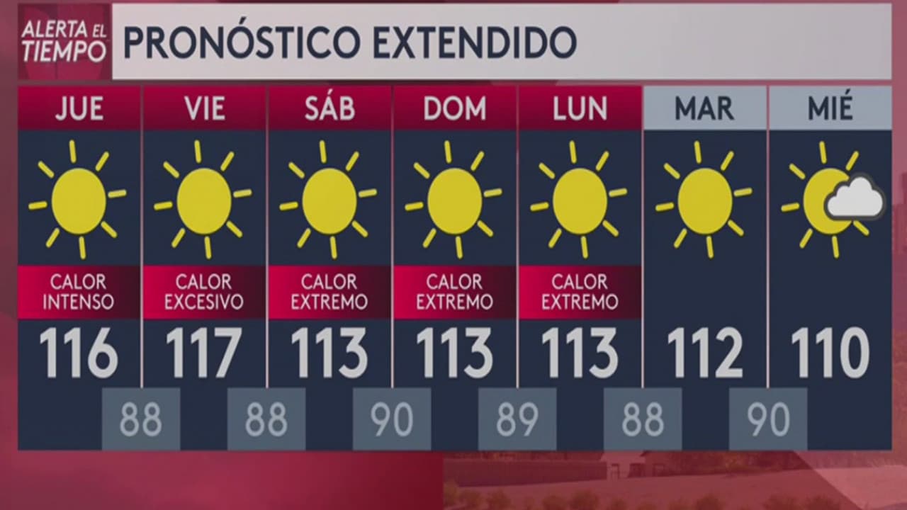En Phoenix y sus alrededores, se esperan que las temperaturas máximas llegarán a los 117 grados Fahrenheit y mínimas de 87 grados.