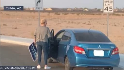 - La policía del condado de Yuma, Arizona, informó que multaron a una mujer por quitar un letrero de la campaña del presidente Donald Trump. Un testigo denunció que observó a la sospechosa cuando retiraba el cartel colocado en el área de la calle 32 y la avenida al 8 ½ E y logró tomar una fotografía de ella y de su vehículo durante el incidente. La policía de Yuma detalló en un comunicado de prensa que el testigo confrontó al sospechoso sobre el retiro del letrero y ella le respondió diciendo: "Llama a la policía". La mujer luego fue identificada como Lacey Smith, de 37 años y residente de Yuma.