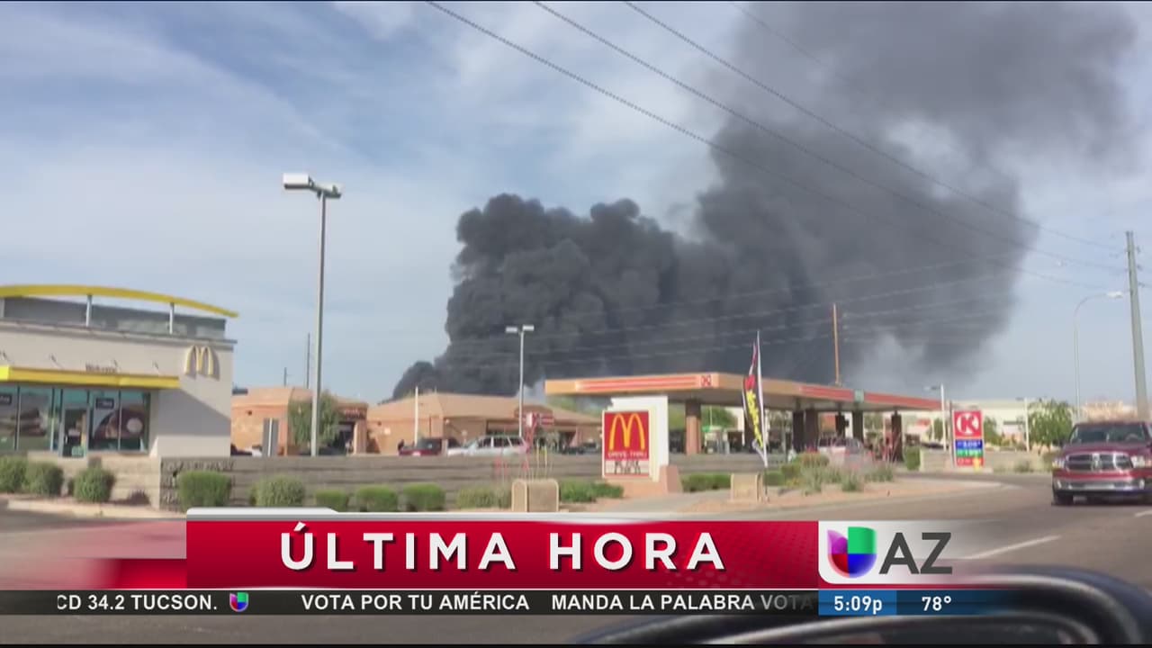 Los bomberos de Phoenix siguen combatiendo las fuertes llamas en un centro de reciclaje de papel.