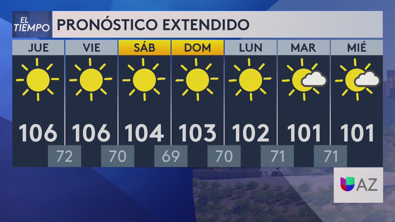 El área metropolitana de Phoenix tendrá temperaturas máximas cerca de los 106 grados Fahrenheit y mínimas de 72 grados este jueves.
