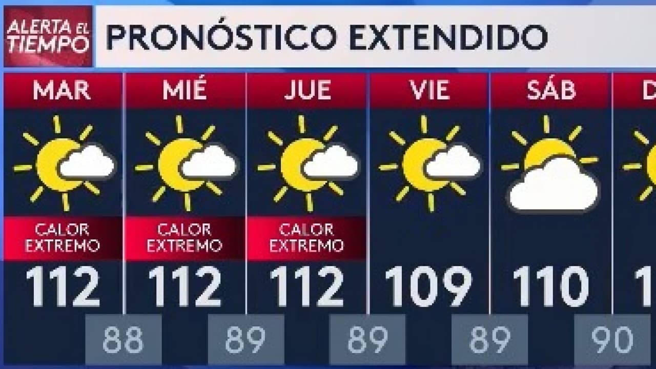 Se espera una mañana con tiempo mayormente seco, pero en la tarde llegan los aguaceros y las tormentas eléctricas. La temperatura máxima estará alrededor de los 110 grados Fahrenheit, aunque las sensaciones térmicas serán más altas.