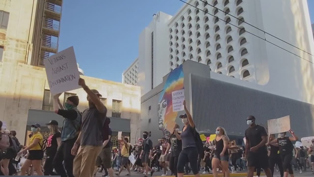 Miles de personas marcharon por las calles de Phoenix a pesar de las altas temperaturas para exigir un alto a la brutalidad policiaca y justicia para George Floyd.