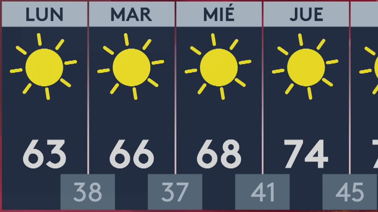 Para este lunes, en Phoenix y sus alrededores se esperan temperaturas máximas cerca de los 67 grados Fahrenheit y mínimas de 38 grados con cielos nublados. “La semana laboral comienza con mañanas frías) y temperaturas casi normales. Luego tenemos un gran calentamiento para la segunda mitad de la semana”, indica el Servicio Meteorológico Nacional de Phoenix.