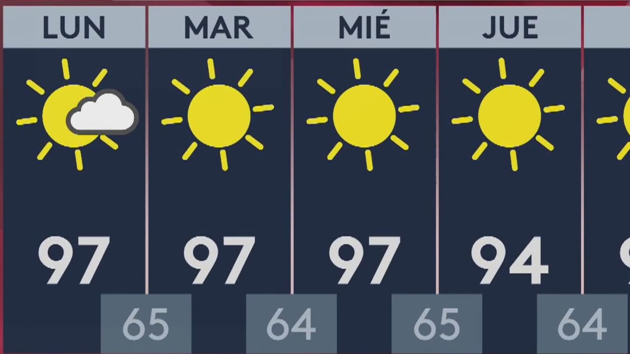 Al sur del estado, se esperan temperaturas máximas cerca de los 95 grados Fahrenheit y mínimas de 60 grados este lunes. Se esperan temperaturas menos calurosas a principios de la próxima semana.