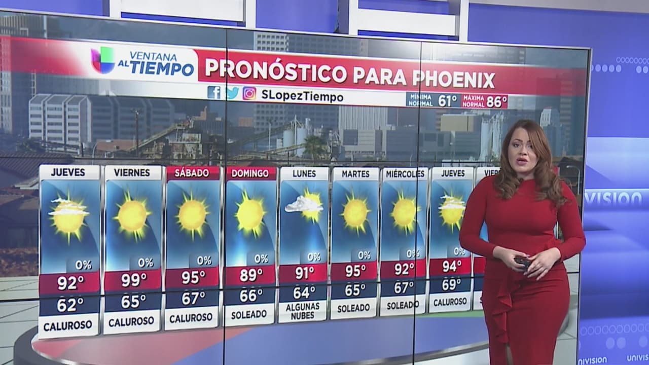 Para este jueves, en Phoenix y sus alrededores se esperan temperaturas máximas cerca de los 97 grados Fahrenheit y mínimas de 59 grados. Para el fin de semana, el valle del sol tendrá un descenso en las temperaturas, lluvias y hasta fuertes vientos podrían registrase en la región.