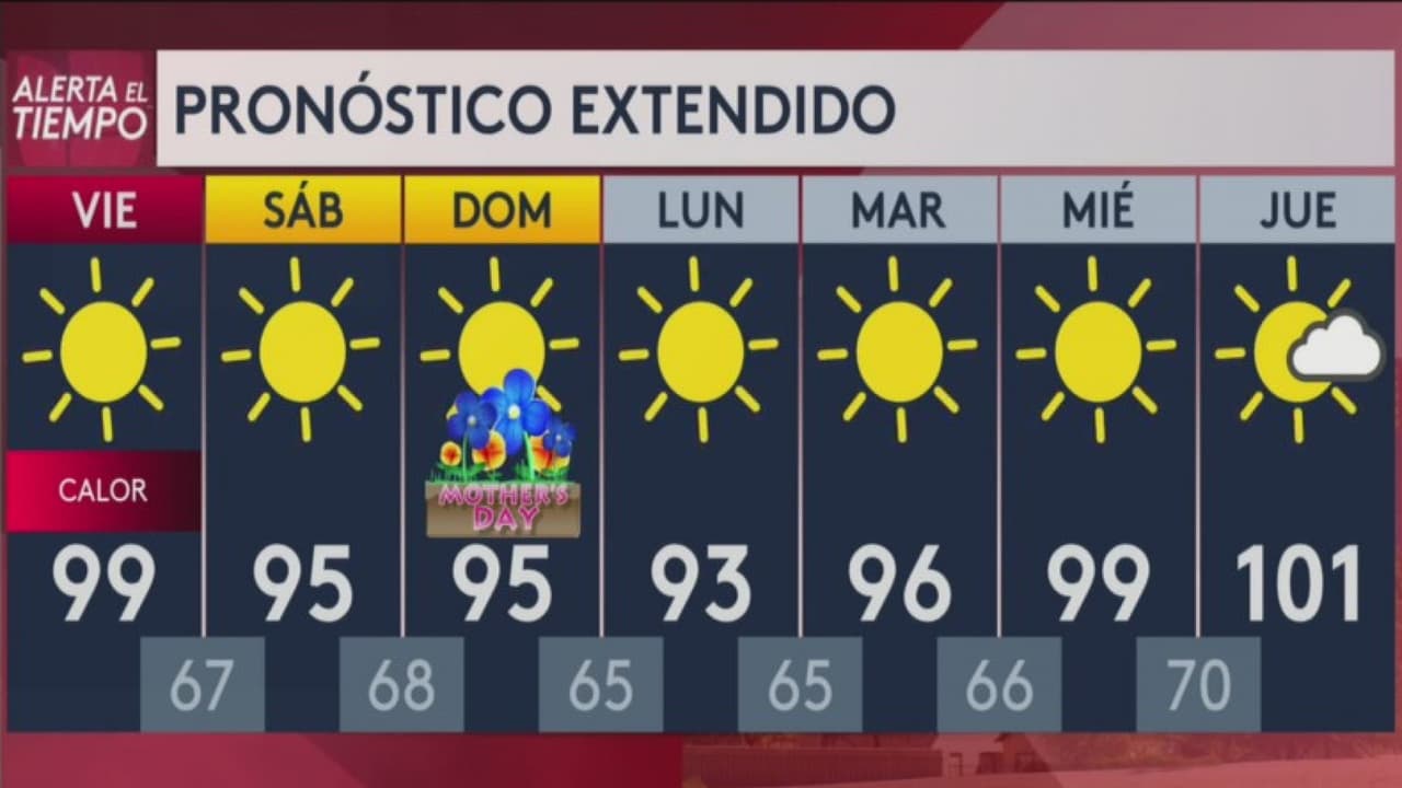 Las temperaturas para este viernes estarán cerca del rango de los tres dígitos, con condiciones de baja humedad y soleadas.