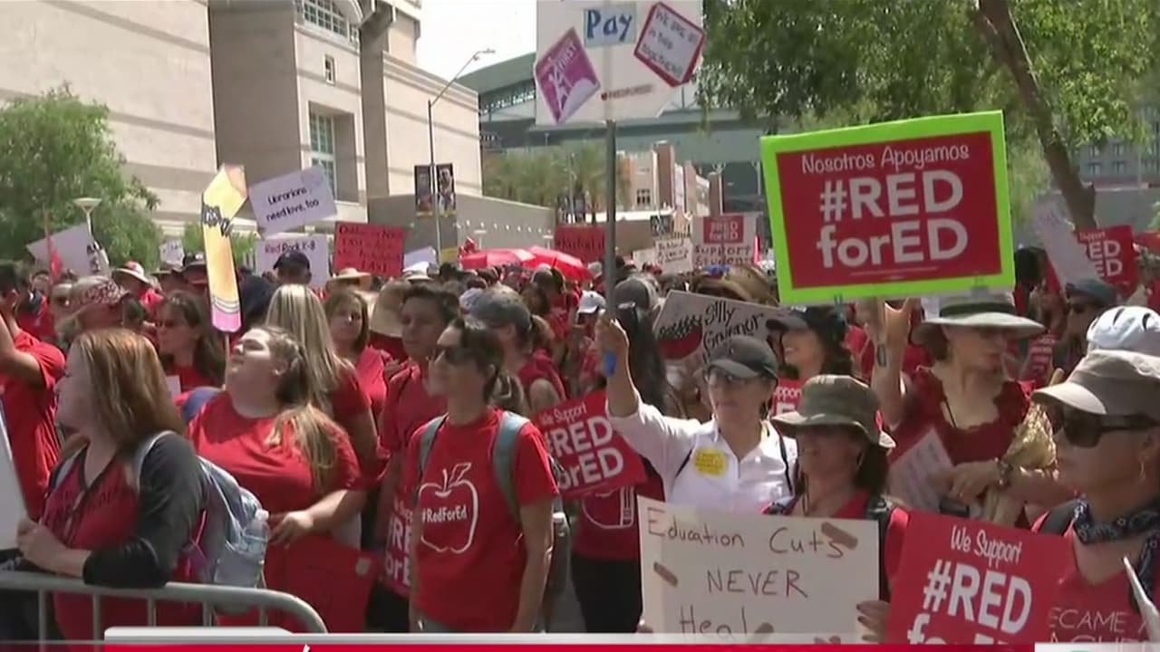 Más de 50,000 personas vestidas de rojo salieron a las calles de la ciudad, luego de que el gobernador Doug Ducey solo propusiera un aumento del 20 por ciento, gradual, a los maestros del estado.