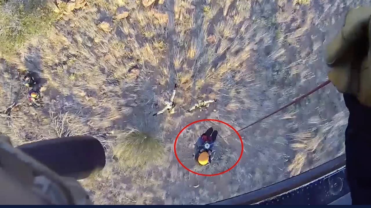 el rescate aéreo de una mujer que parecía estar severamente deshidratada e incapaz de seguir caminando.