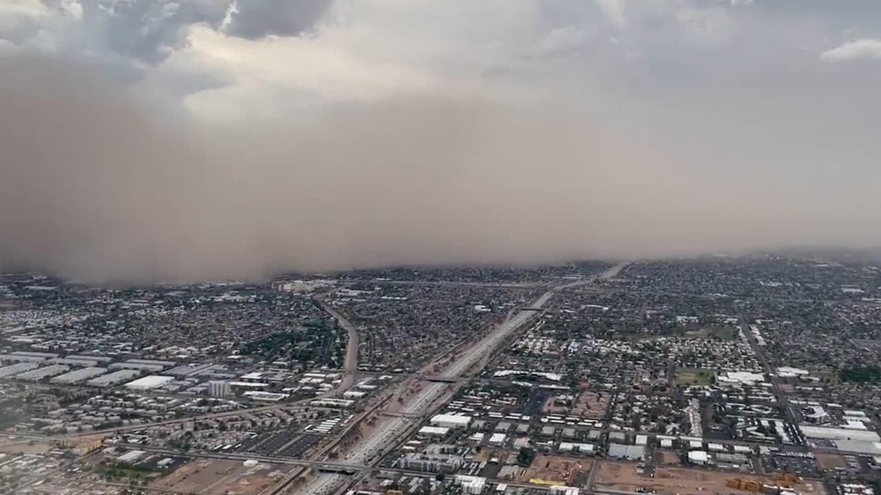 Poco antes de llegar al aeropuerto Sky Harbour de Phoenix, un pasajero captó una tormenta de polvo cubriendo la ciudad. Las imágenes son del pasado 29 de junio.