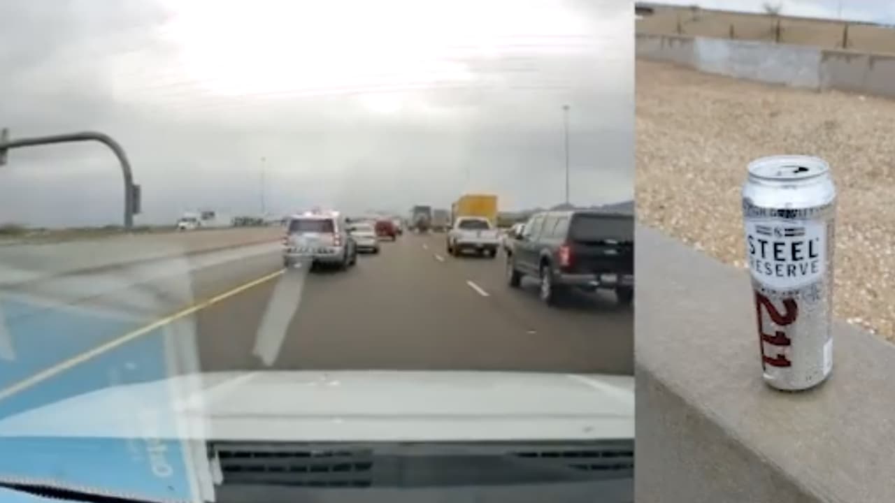 Desde la patrulla el oficial observó a la conductora de un sedán Honda pasar a otros vehículos en el arcén de la I-10 cerca de Citrus Rd, luego arrojó una lata de cerveza por la ventana. La mujer fue arrestada y enfrenta cargos.