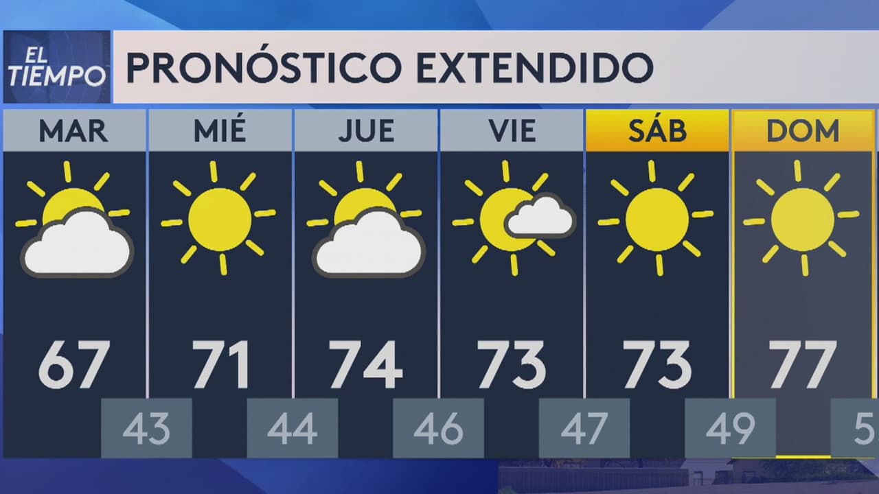 Para este martes, en Phoenix y sus alrededores se esperan temperaturas máximas cerca de los 66 grados Fahrenheit y mínimas de 43 grados. Se espera que para el domingo las temperaturas cercanas o superiores a los 80ºF.
