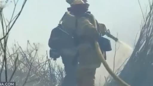 Se estima que el fuego ha consumido entre 10 y 12 acres de un terreno rocoso empinado en la vegetación del desierto.