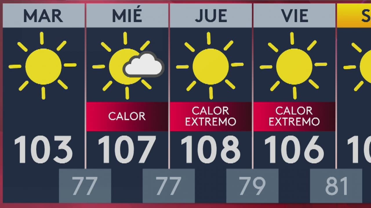 El área metropolitana de Phoenix tendrá temperaturas máximas cerca de los 104 grados Fahrenheit y mínimas de 76 grados este martes. “El día más caluroso de esta semana debería ser el jueves, ya que Phoenix sube a alrededor de 107 ° F”, indica el Servicio Meteorológico Nacional de Phoenix.