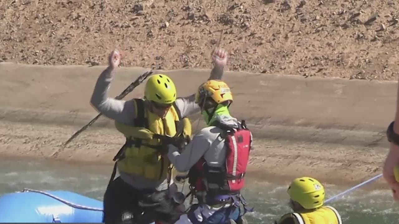 En Phoenix, bomberos entrenan para rescates en zonas inundadas durante la temporada del monzón.