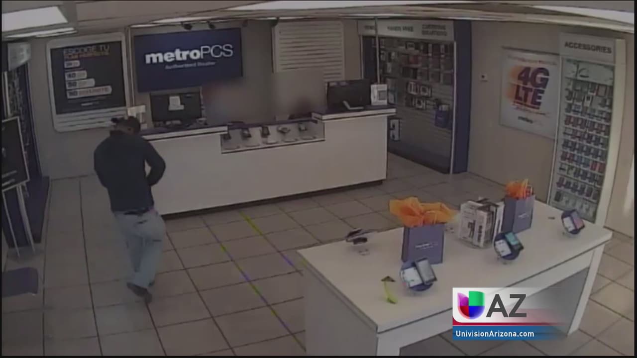 Un video muestra el momento en que dos asaltantes que robaron una tienda de celulares, si los conoce denúncielos.