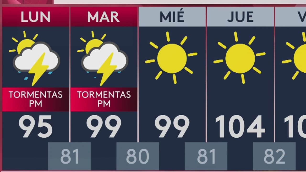 Para este lunes el área metropolitana de Phoenix tendrá temperaturas máximas cerca de los 101 grados Fahrenheit y mínimas de 77 grados. “Hubo mucha lluvia en los últimos días, pero gran parte no llegó al área metropolitana de Phoenix”, indica el Servicio Meteorológico Nacional de Phoenix. Sin embargo, este lunes hay probabilidad de lluvias y tormentas en el centro de Arizona.