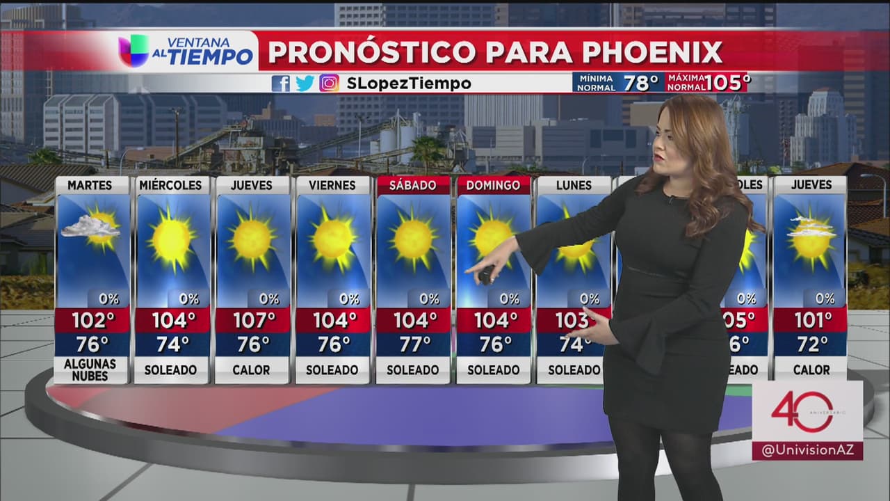 La baja humedad ha dado paso a las temperaturas de tres dígitos en la región, para este martes se espera una máxima de 102 grados Fahrenheit. Manténgase bien hidratado y evite actividades al aire libre.
