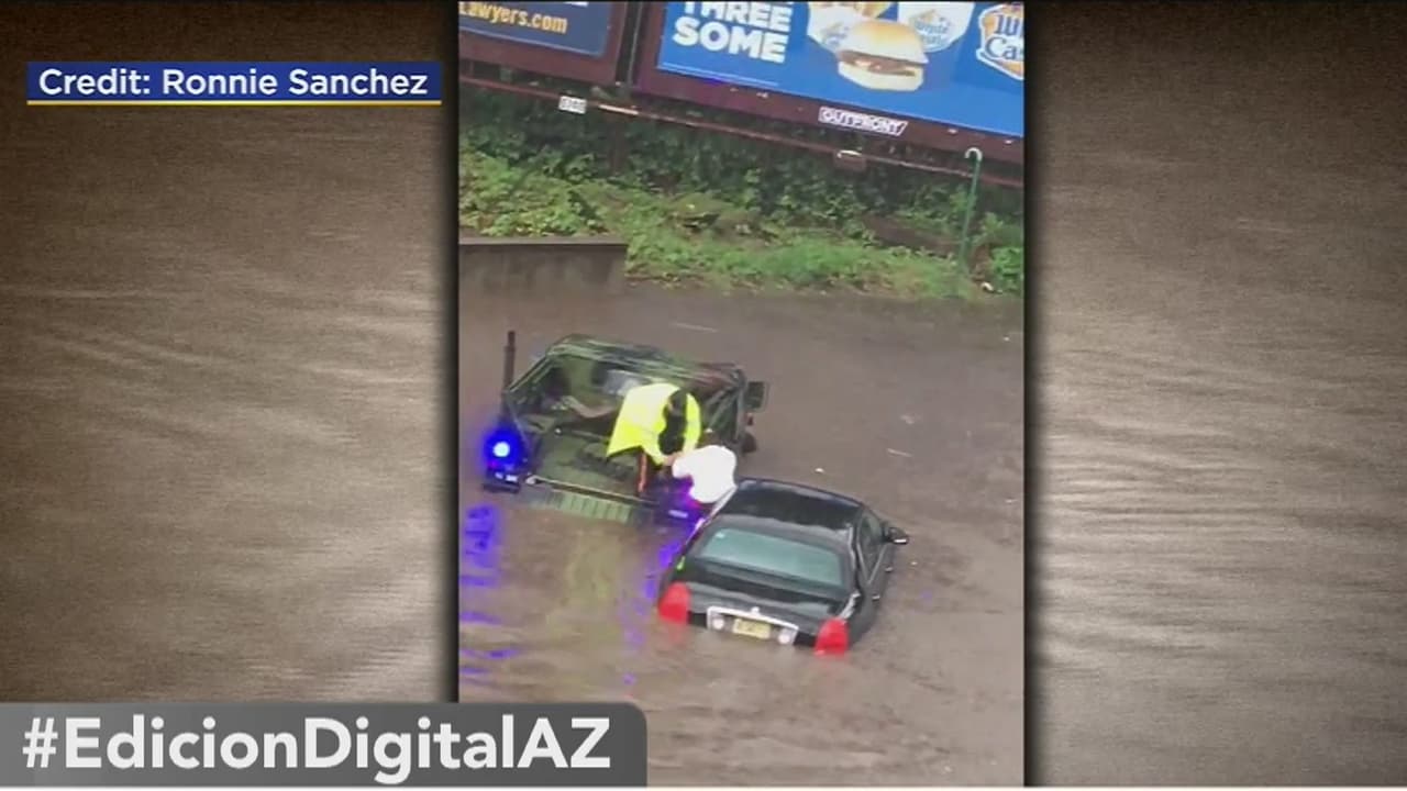 Una mujer de la tercera edad estaba atrapada en el asiento trasero de un vehículo cubierto por el agua en medio de una inundación en Nueva Jersey, pero cuerpos de rescate llegaron y lograron sacarla junto con su acompañante.
