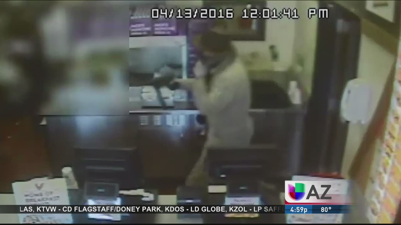 Unos empleados de un restaurante de comida rápida fueron asaltados por un hombre con una metralleta.