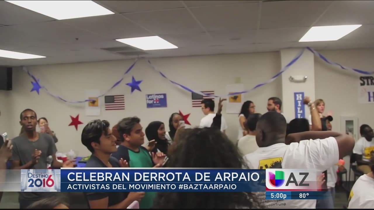 Activistas e inmigrantes celebraron la derrota del polémico alguacil Joe Arpaio en las afueras dela oficina en Maricopa.