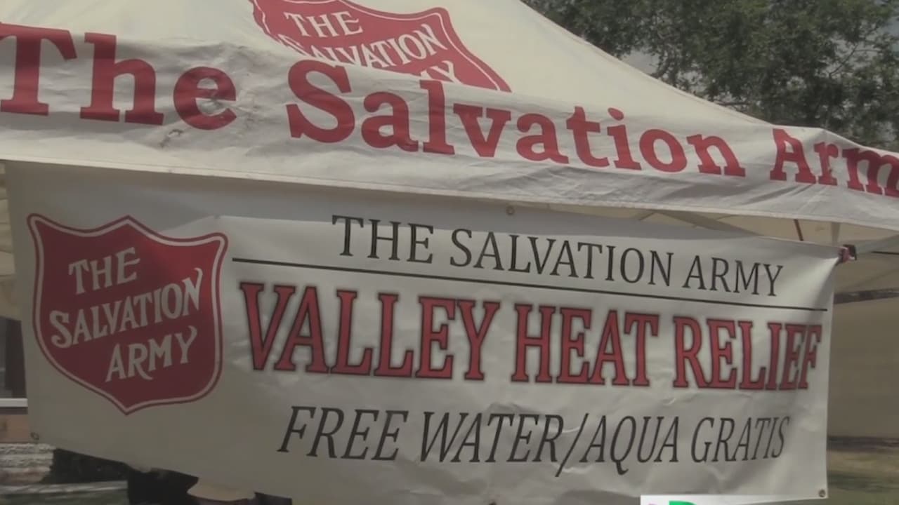 Agua, bloqueador solar y un espacio bajo la sombra es algo de lo que ofrecen las estaciones de alivio instaladas por Salvation Army para brindar apoyo a la población en general, pero más a aquellos que más lo necesitan.