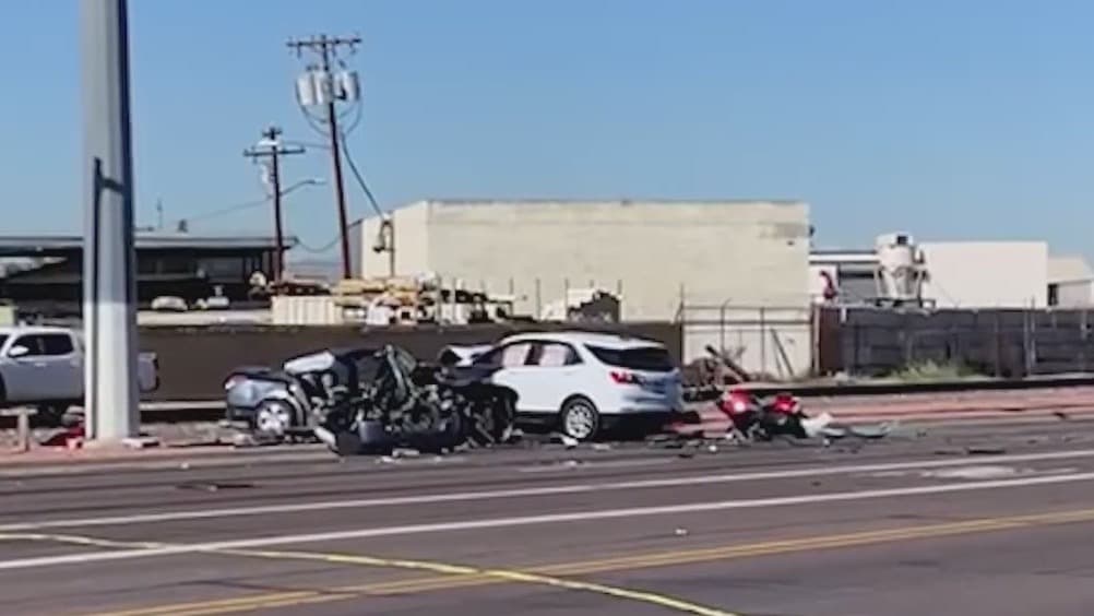 “Durante la primera parte de la investigación, se descubrió que un Nissan Altima viajaba hacia el noroeste en Grand Ave. El Nissan chocó contra un Jeep Grand Cherokee en un carril en dirección sureste. La colisión inicial provocó la participación de otros dos vehículos, que son una motocicleta y un chevy Equinox. El Nissan tenía tres ocupantes, incluido el pasajero del asiento trasero que fue declarado muerto en la escena. Los otros tres vehículos involucrados tenían un solo ocupante. Se están investigando la velocidad y el deterioro, pero es demasiado pronto para saber si fueron factores contribuyentes en este momento”, se lee en el comunicado de prensa que envió la policía de Glendale a Univision Arizona.