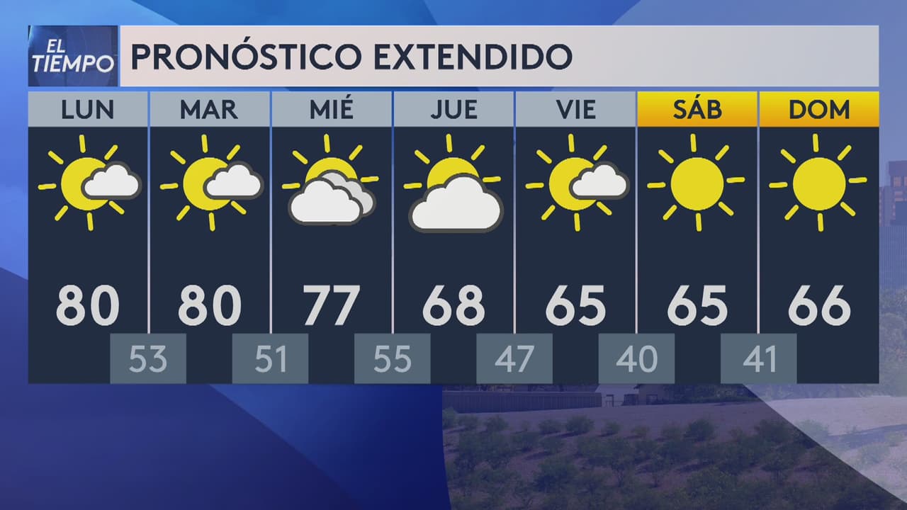 Mientras tanto, en Tucson y algunas áreas aledañas, se esperan temperaturas máximas cerca de los 77 grados Fahrenheit y mínimas de 47 grados. Se espera que para el miércoles por la noche y el jueves lleguen lluvias al sur del estado. “Hasta entonces, espere temperaturas por encima de lo normal con condiciones de viento los lunes y martes”, indica el Servicio Meteorológico Nacional de Tucson.