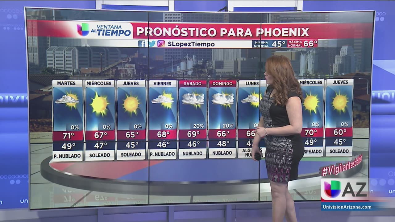 Un inicio de semana laboral con un poco de nubosidad y temperaturas máximas alrededor de los 70 grados en la Valle, para este martes se esperan temperaturas mínimas de 49 grados y máximas de 71 para Phoenix.