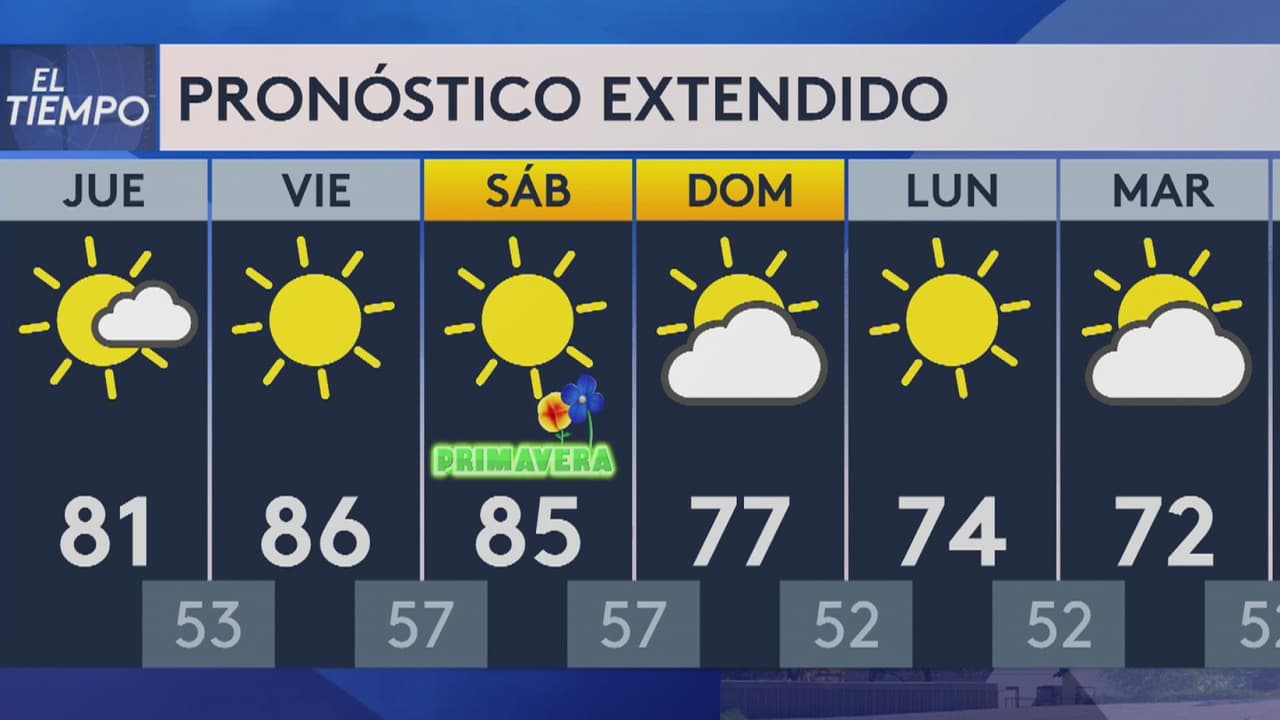 Se prevén temperaturas máximas cerca de los 82 grados Fahrenheit y mínimas de 47 grados en Phoenix y algunas áreas aledañas con cielos nublados. “Un par de alteraciones del clima hacen que las temperaturas bajen a principios de la semana que viene. También habrá una oportunidad para la precipitación el domingo por la noche y el lunes, principalmente al este y sureste del área de Phoenix” indica el Servicio Meteorológico Nacional de Phoenix.