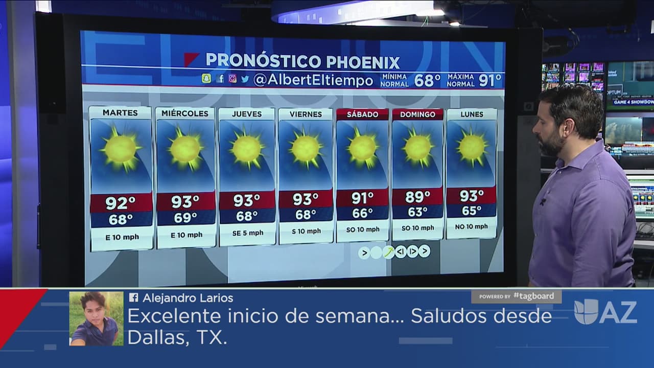 En Arizona se espera un clima cálido con temperaturas máximas superiores a los 90 grados.